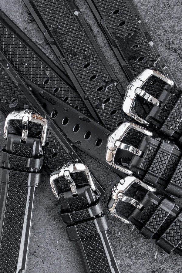 Made to withstand whatever you can throw at it, the Hirsch Accent is the adventurer's choice of strap. It will go to the edge with you thanks to its peerless water-resistance and tear-proof properties, and the lattice texture adorning the upper layer gives it a distinctive, complex look. An ideal accompaniment to sports and diving watches.