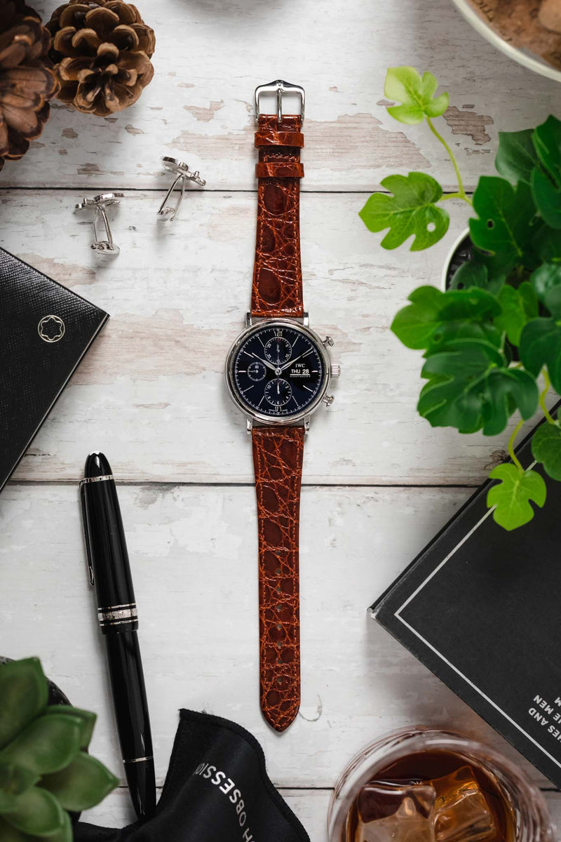 Crafted from specially-selected South American crocodile flank and dyed with a meticulous fibre-deep process, the Genuine Croco has an intricate, natural texture of variable-size scales, ensuring no two straps are exactly alike. With its shiny finish, this is a luxurious accessory for your watch and is available in a wide variety of sizes and colours.